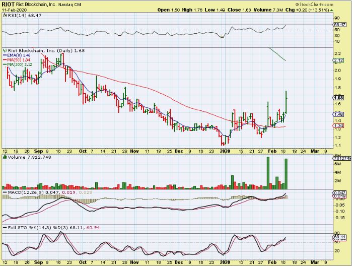 RIOT – It was choppy, but suddenly popped 16% Tuesday to that $1.80 area and dipped into the close. The whole sector seemed to Pop…