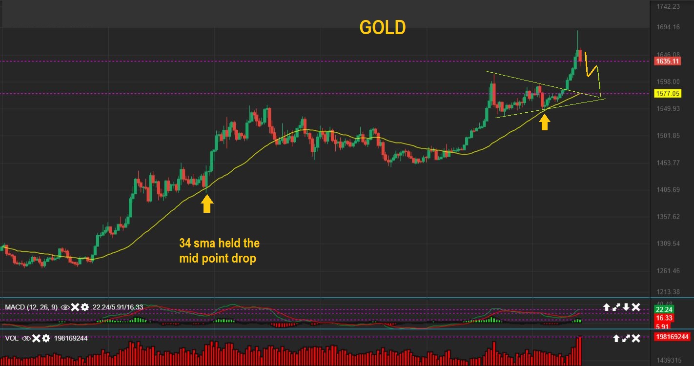 EDIT 6:30 a.m. Eastern time: As I proof read, this is Gold. It sold off from $1690 to $1630ish, that was the reversal candle and now it may form a cup. I do not think that this is a dcl, but more of a ‘continuation’ of the 2nd daily cycle, because….