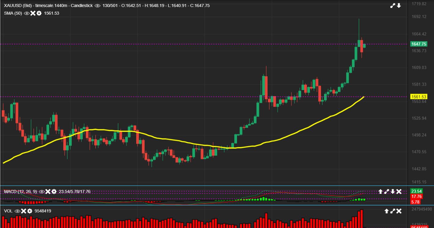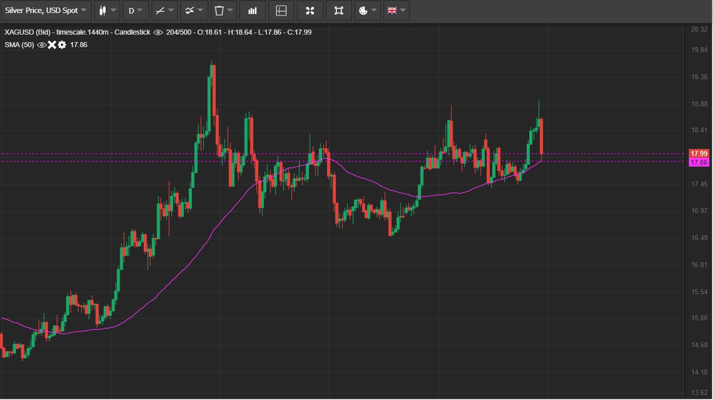 SILVER – Silver actually dropped sharply Tuesday and bounced off of the 50 sma. I’m looking at this as an inverse H&S and would like to see it remain above the recent lows.
