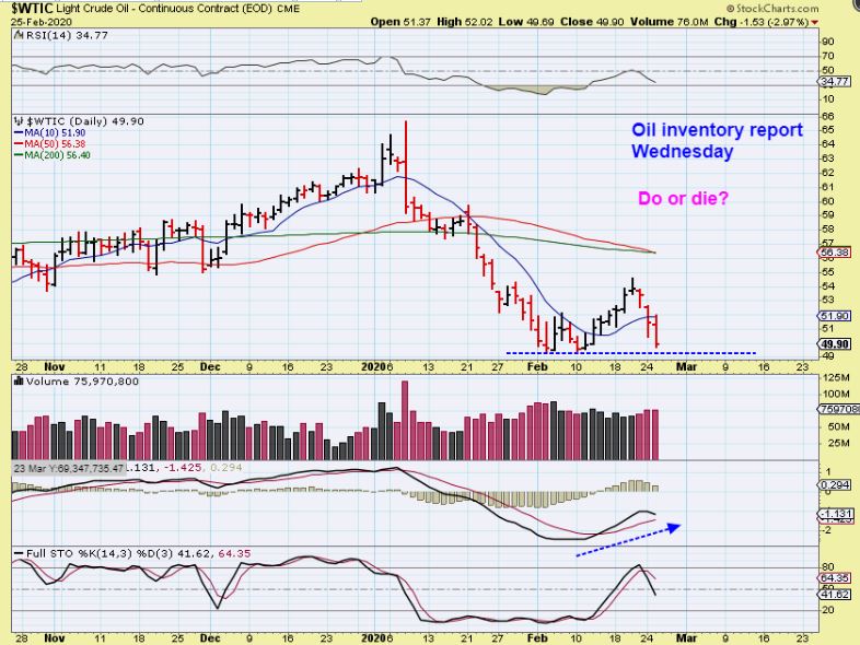 The Oil inventory comes out Wednesday. This may break those lows, but that would be a failure. That would signal a deeper drop in a left translated daily cycle. Oil would get real cheap again,dropping well below $50
