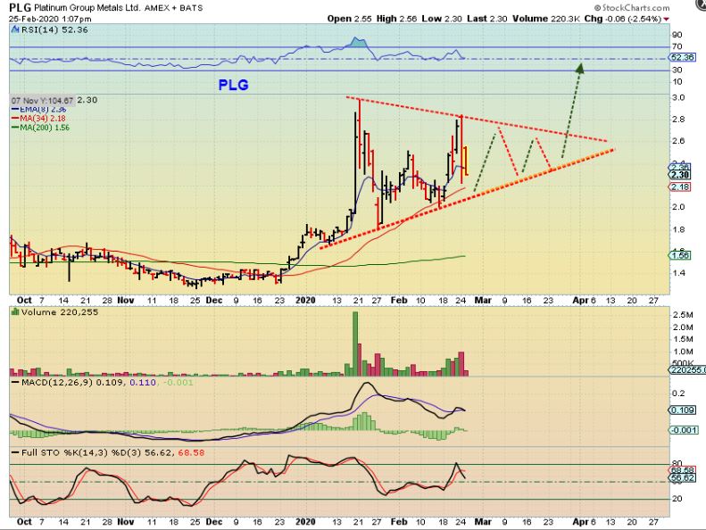 PLG – I also looked at it making higher lows and thought that maybe it will form a long boring triangle (Choppy). We’ll see, but really PLG still looks bullish above the $2 area.