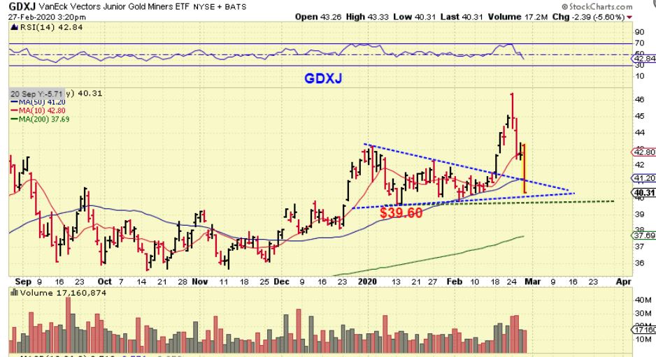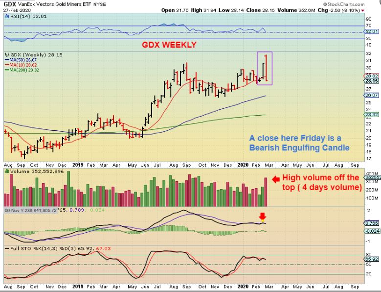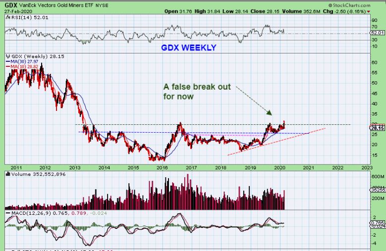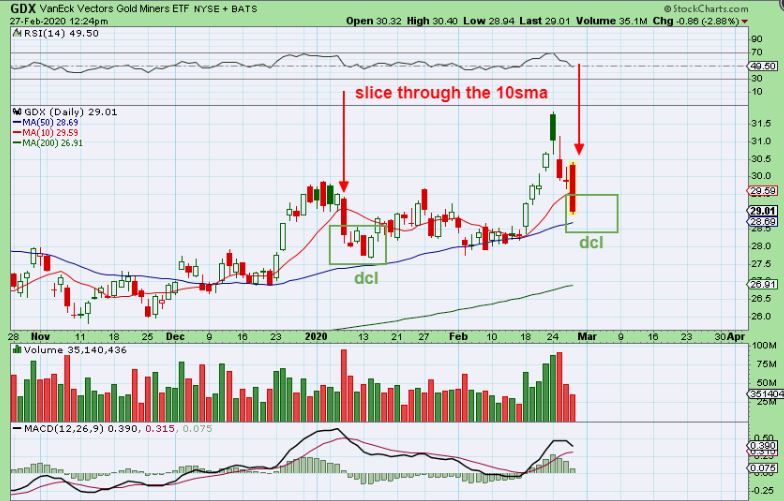 The GDX WEEKLY was bullishly climbing that 30 week ma too, and even that is being threatened by the sudden increased selling.