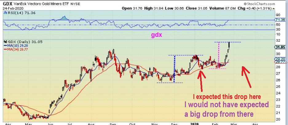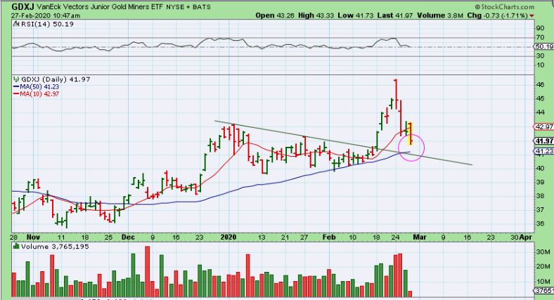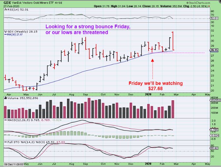 This was a very unfortunate situation, when you look at that weekly set up of GDX just 3 days ago. THIS was a perfect cup & handle set up, which makes it a perfect example of why I always encourage placing stops at a place where you do not want to lose money. you can always get back in if it takes off higher.