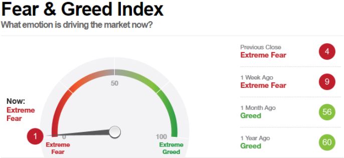 It just doesn’t get much more ‘fearful’ than this – a reading of ONE.  This often leads to a bounce & could become a short covering rally too.  Let’s go to the SPX charts.