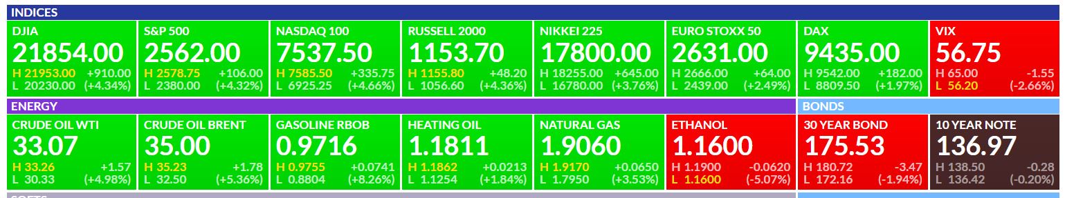 The futures are up fairly big, with the Dow almost up 1000 points, but we have seen this before and it only gave us a 1 day pop on the last reversal, so keep that in the back of your mind.