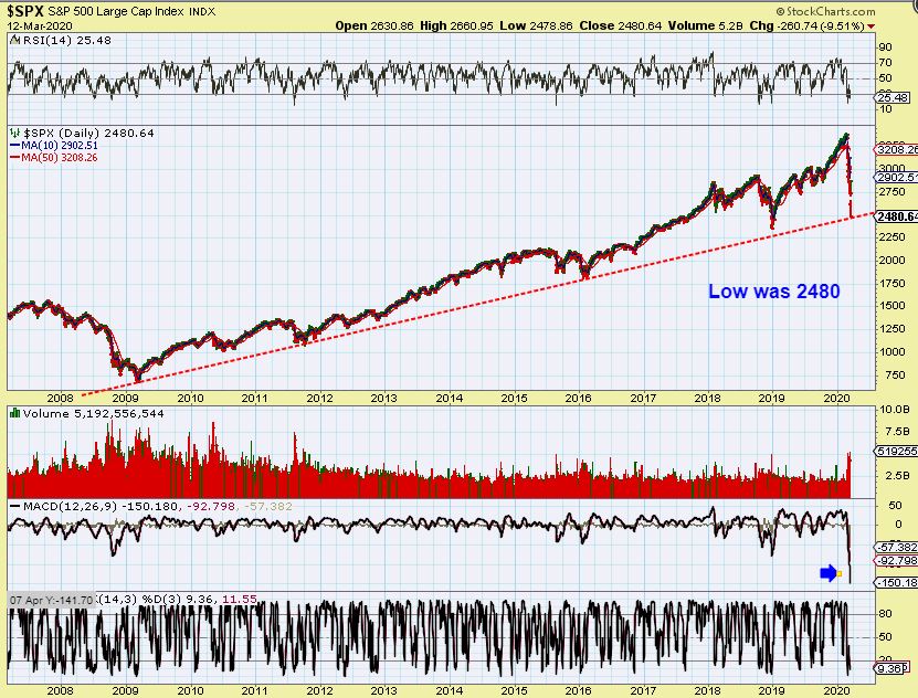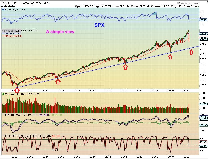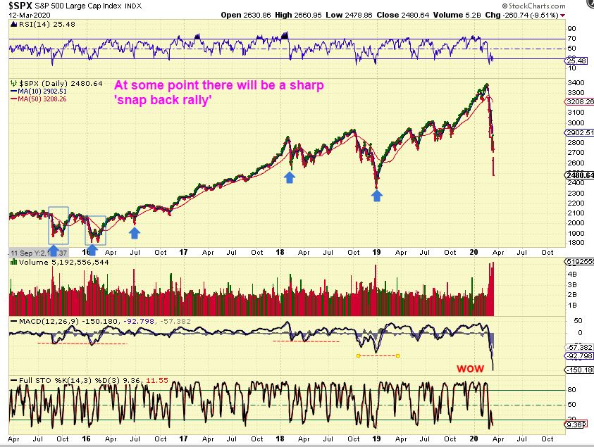 Personal thought :  This bounce could be more of a V-Bottom at first, with short covering ( like Dec 2018) . We’ll have to wait and see, because we also have the Economic concerns becoming a reality with the Coronavirus shutting may businesses down.  Those concerns could also cut any bottom buying short.