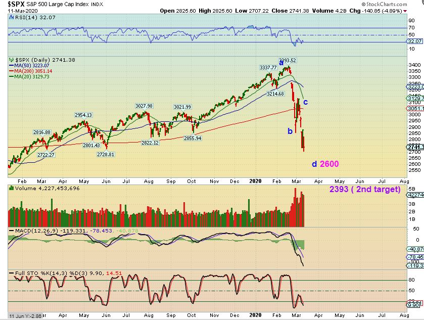 SPX FROM YESTERDAY  – I WROTE:  My downside targets have not been hit yet, but we are getting close.  I have 2600 as the initial target, and a deeper fib target would be roughly 2400 ( 2393).