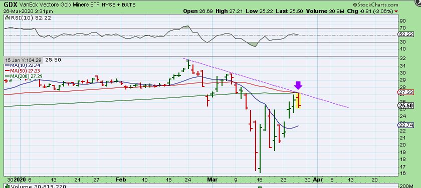 GDX FROM YESTERDAYS REPORT – I mentioned Wednesday that GDX may stall and we could see a normal pull back, even filling that gap at the 10sma.