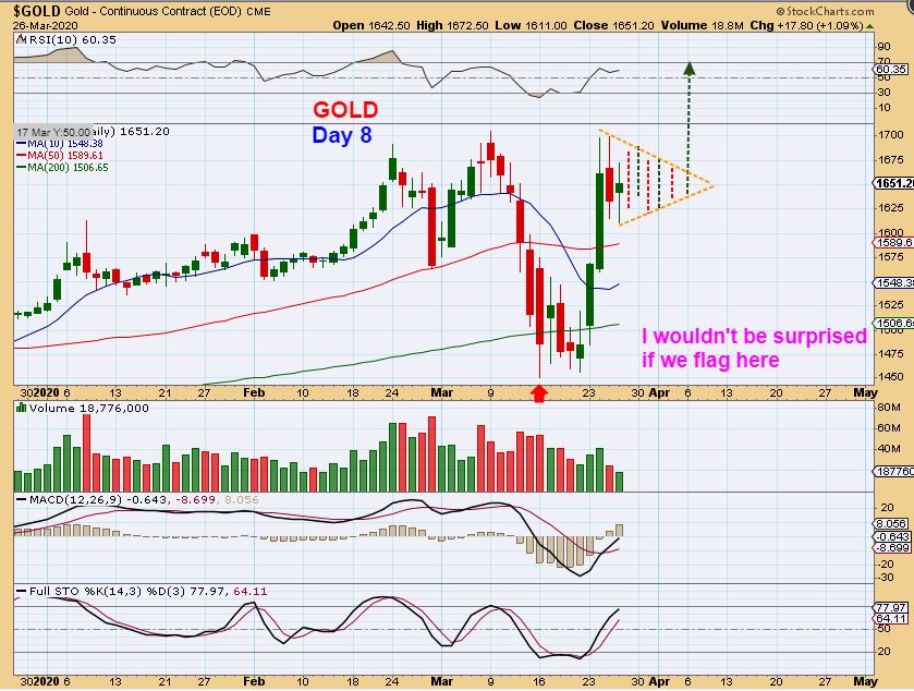 GOLD We might even see GOLD put in a consolidation or bull flag of the recent gains. We really have to wait and see but it is only day 8, and if that is an ICL (likely), this has plenty of time to move around.