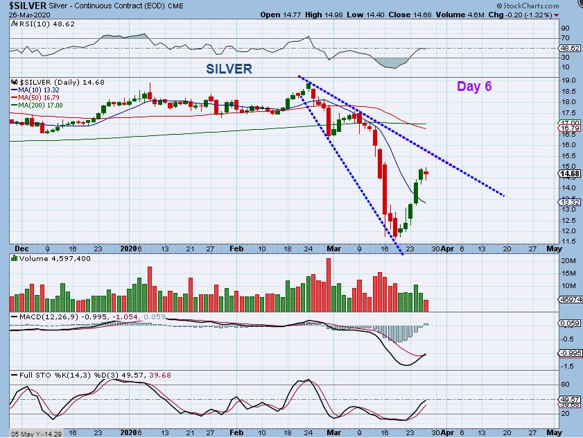 SILVER FROM MONDAY – I was pointing out areas that might ‘stall’ silvers climb. Resistance levels with the first one being at $14.50 resistance