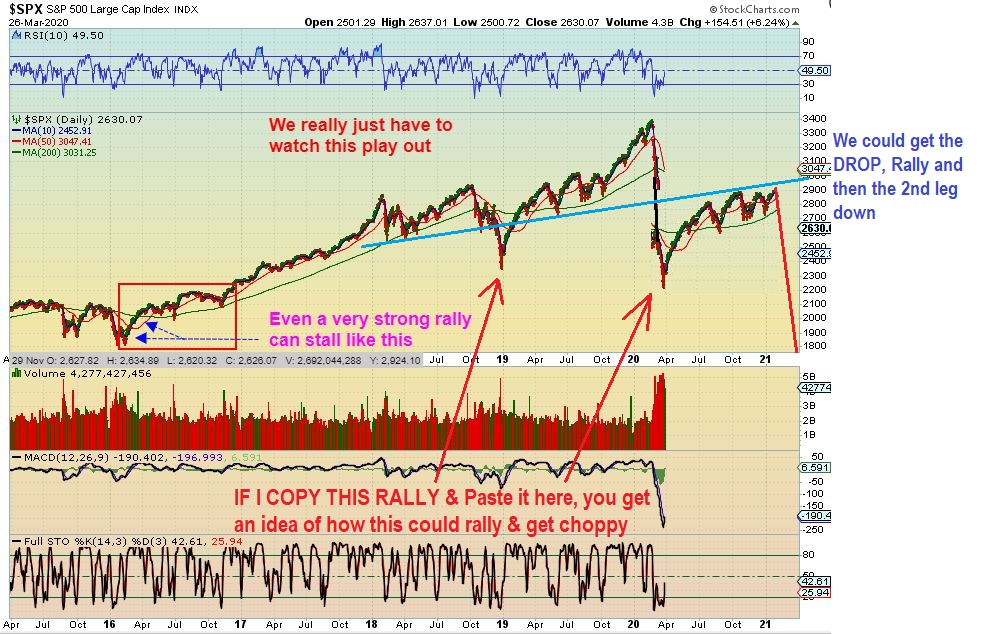 Yes, this was my chart used recently to show The DOW DROP from the Great Depression vs Todays in Yellow. Both were Very sharp & straight down, but then we saw a rally for MONTHS actually, before the sell off resumed in a bear market drop. So we will take it STEP BY STEP, But another sell off could eventually follow the first one.