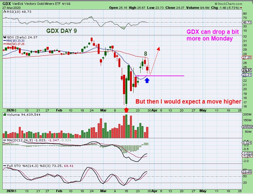GDX DAILY – I mentioned on Wednesday that GDX may stall at resistance and we could see a normal pull back, even filling that gap at the 10sma.