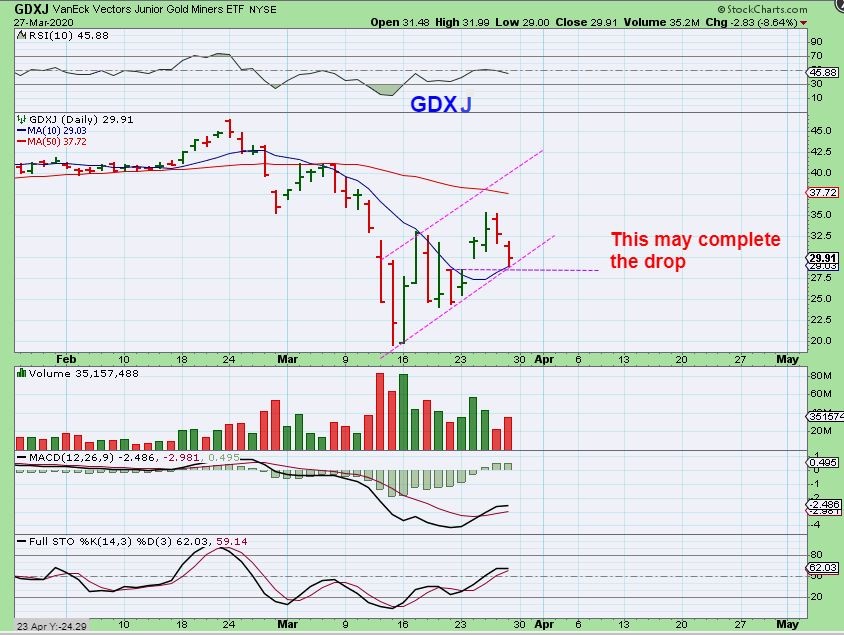 FROM THURSDAY – GOLD DAILY : Gold crashed down & recovered already. I mentioned that Gold may consolidate for a while, maybe even forming a bull flag. Gold continued trading in that area Friday, while Miners pulled back.