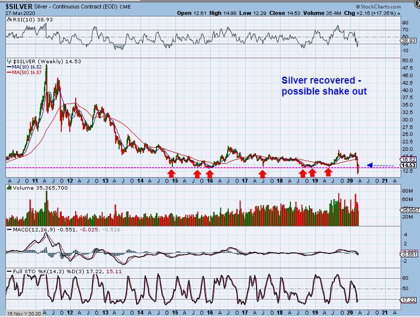 SILVER WEEKLY – Silver broke all of the recent lows and recovered. Talk about cleaning the slate! That’s the way to run the stops and get everyone out of Silver, and yet no one seemed to be able to buy much physical Silver during this crash. It seems that maybe the BIG BOYZ were loading up on the crash? Silver may now be ready to put in the run that we all want to see.