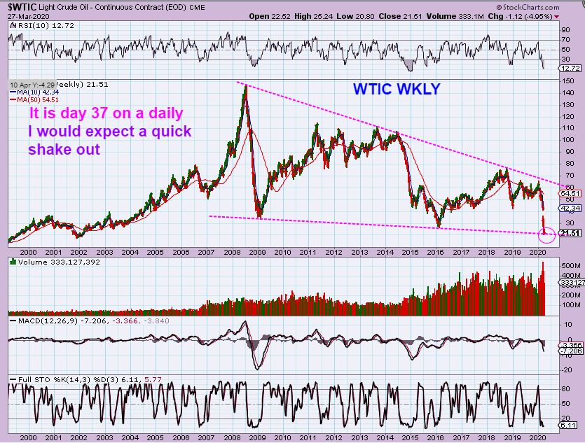 WTIC BIG PICTURE – We are in what I would expect to be a support area. Oil can bottom at any time.