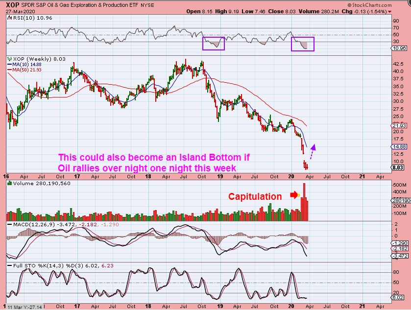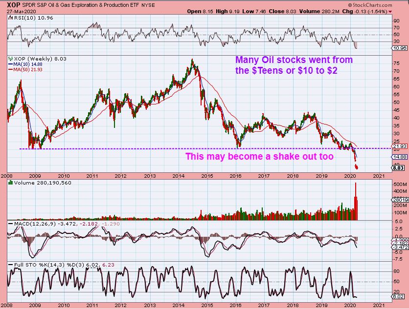 XOP WEEKLY – Many Oil stocks are at a fraction of their former prices and a nice snap back rally may happen in many of them when oil bottoms too. I already traded a few, and I both made money and lost money, so it just isn’t time yet for all of these. I do think that they will rally with oil. I traded TUSK, PUMP, OAS, LPI, WLL, WTI in small quick trades.