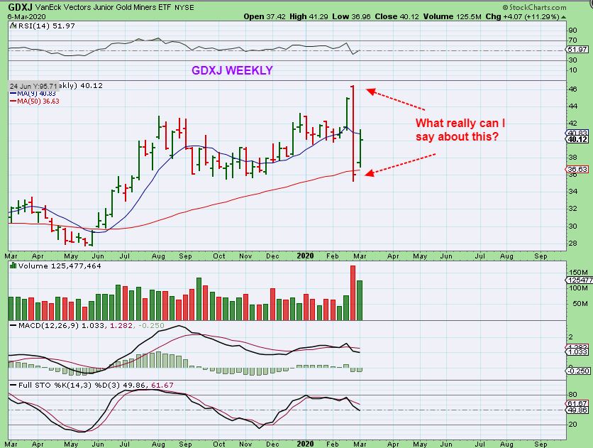 GDXJ WEEKLY – Read the chart, that pretty much sums it up. 🙂 It is an Anomaly. We got an extremely bearish looking drop for the last week of February that closed below the 50 week ma, but then it recovers? That looks bullish, but I just can’t trust that recovery fully at this point because of cycle counts. This may just get very choppy, we’ll have to take it day by day.