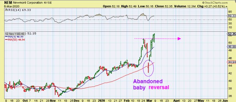 So let’s go back to this GDX CHART: Last week I said that this could be bought with a stop under the low, and this week I said you can raise stops to the 50 sma on a daily chart.