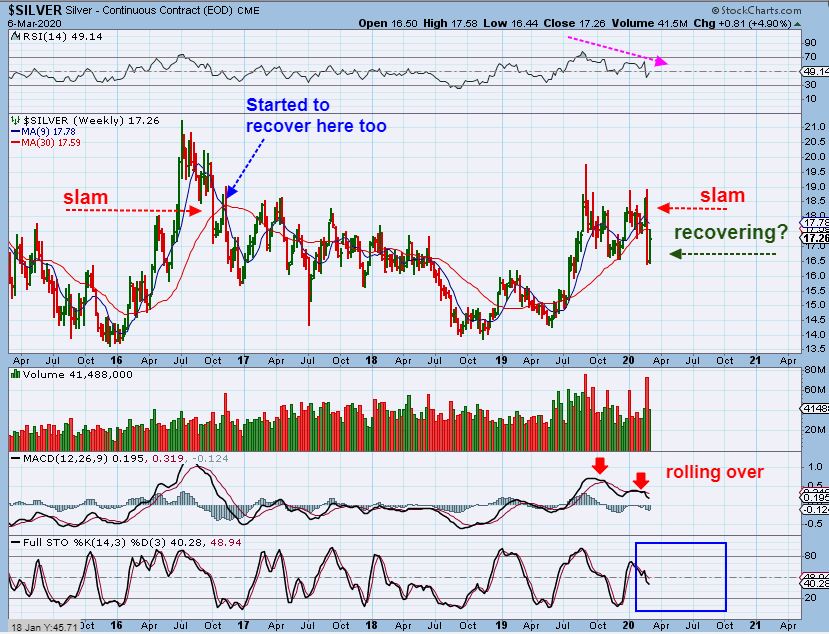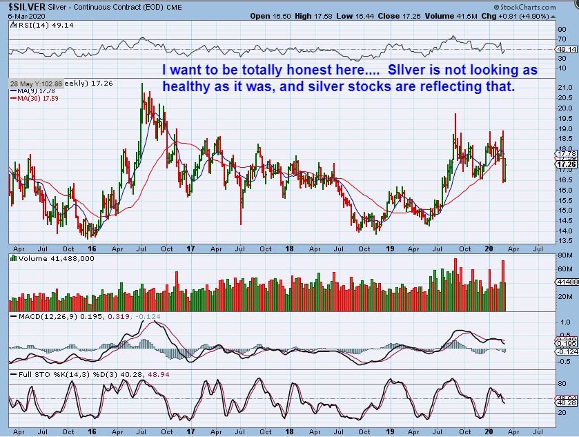 SILVER WEEKLY – I want to be honest , This leaves me unable to really ‘understand’ the sharp drop & therefore the future path of Silver. I feel like Silver flushed out & wants to rally, but silver stocks look weak. I also ask myself…