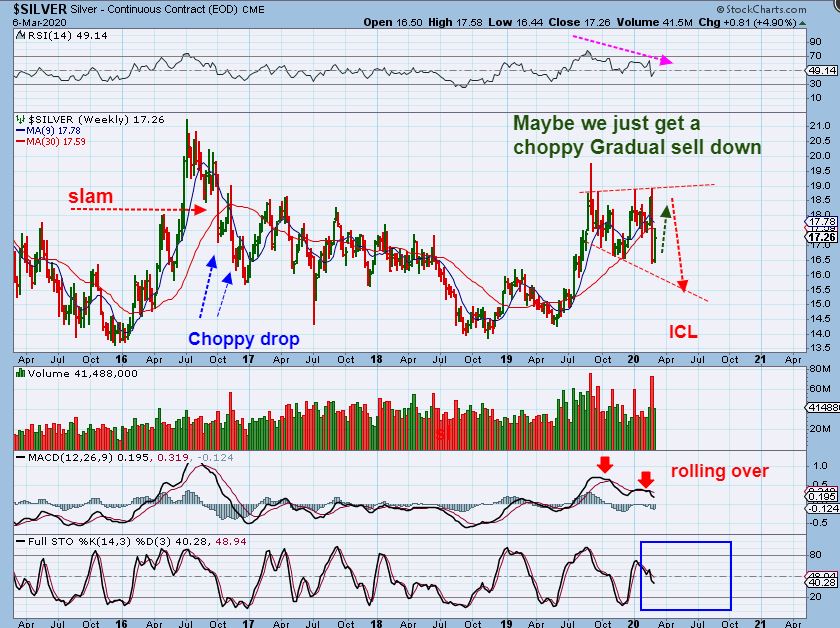 THESE ARE THE UNKNOWNS, but if Gold drops into an ICL, I HAVE TO EXPECT THAT SILVER WILL NOT HOLD UP ON ITS OWN, RIGHT? The chart below is my best guess for chop & a drop, but I will know more as time moves forward and will discuss it often as clues develop. Look where I wrote “Choppy Drop” – that may repeat here.