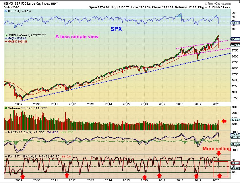 SPX WEEKLY – I drew this channel in a chart over a week ago, expecting the drop to end, we’d see a bounce & then a 2nd leg down.
