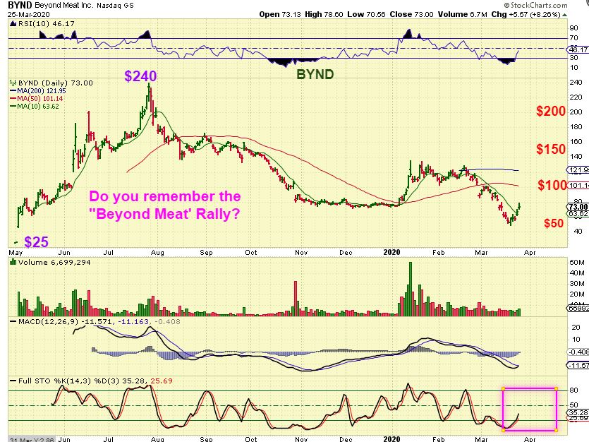 BYND – Beyond meat had that amazing run from $25 to $240. After selling off and forming a base, it broke down with the recent sell off.  It is oversold and even though that looks like a small bounce that can run higher to $100, Let’s zoom in …