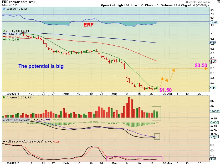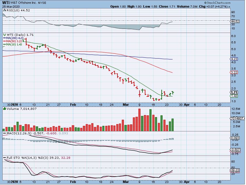 FROM MARCH 24th : WTI  – This tiny pop from a higher low on the 10sma was 17%.  These stocks might really POP %-wise.  They are still very oversold.