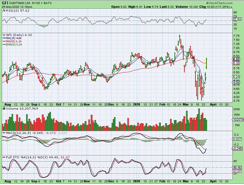 GFI cut through the 50sma Wednesday too. It is possible that GDX could do the same, but it may depend on whether or not GOLD is higher or lower.
