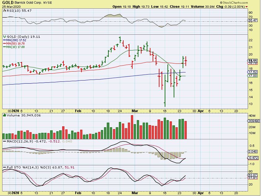 GOLD (BARRICK) – Barrick broke above the 50 & 200sma too.