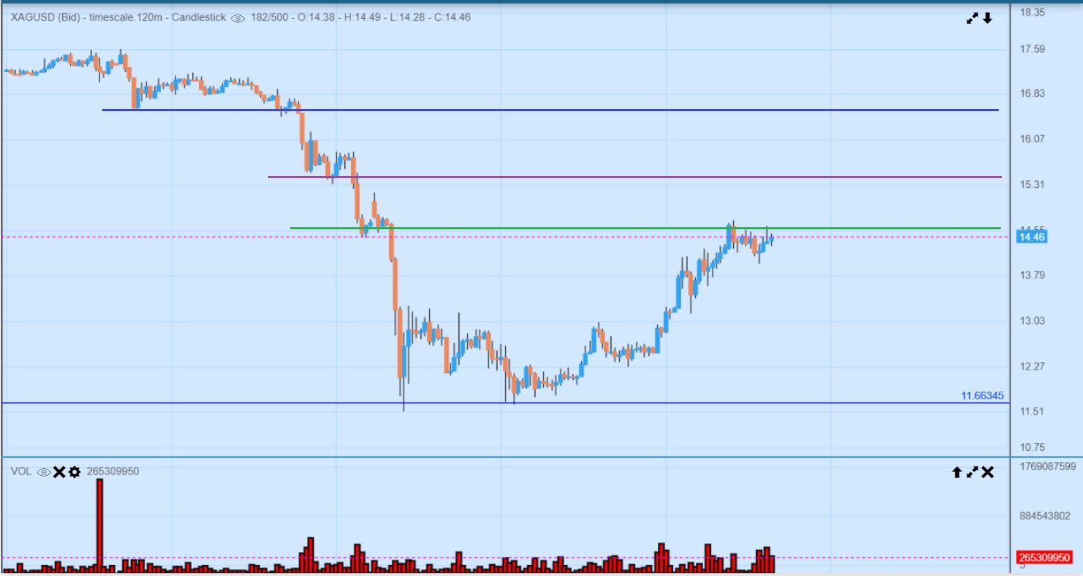 SILVER MARCH 25 –  So when Silver hit that $14.50 are and stalled Wednesday,  we should not have been surprised.