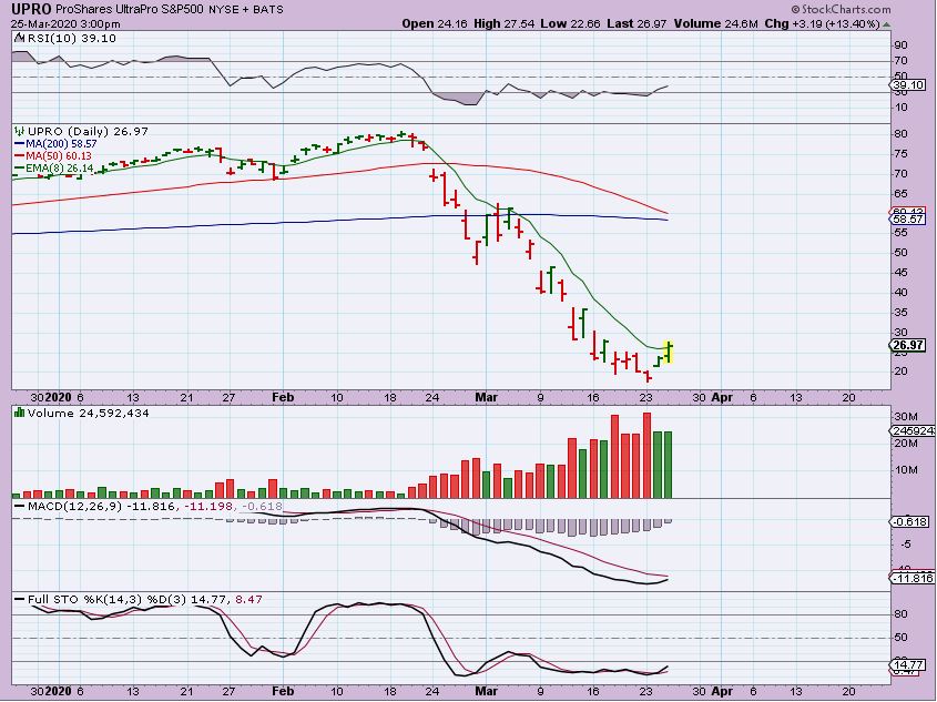 UPRO – So UPRO is a leveraged Buy, use a stop.