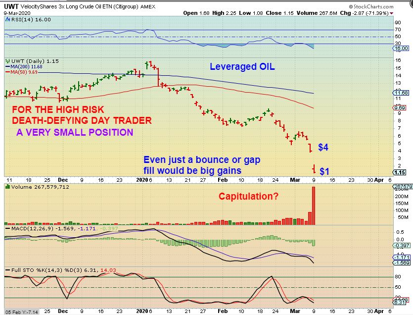 3. This would be so hard to believe, but could we bounce and drop even lower, like near $20? We have to wait and see , but I think we’ll see Oil bounce soon with this high volume gap down and possibly give us clues along the way.