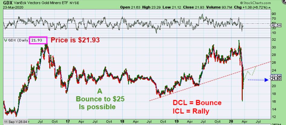 GDX – This is an example of a weaker bounce. IGNORE THE ‘timing’, we would get there WAY before July, I often just have to draw it so you could see it on the chart. If this is an ICL, GDX would probably break right through that red line as a recovery.