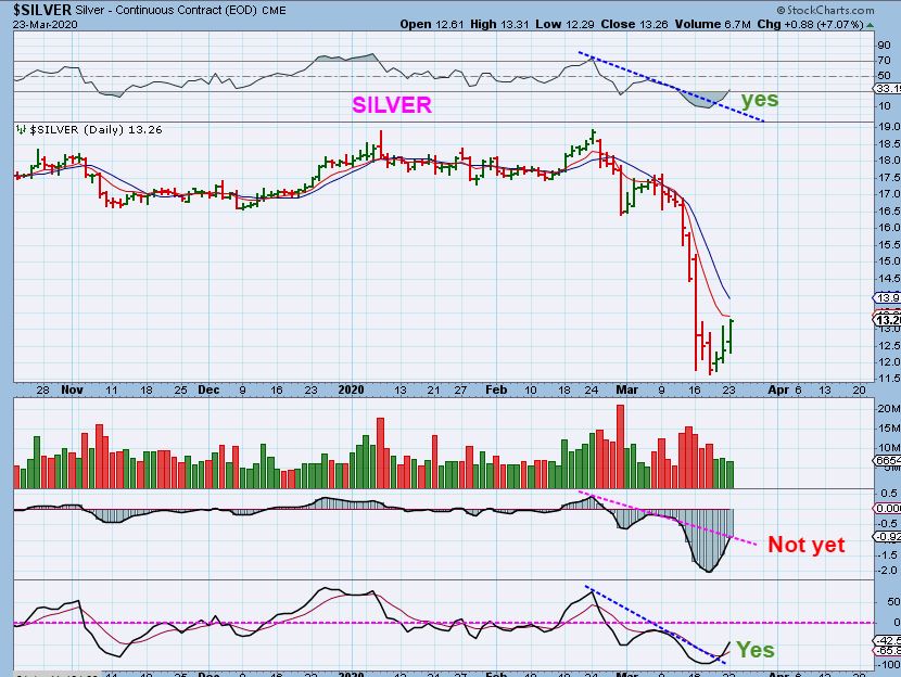 SILVER – Silver could be on day 3, but it hasn’t made it to the 10sma yet. That is right under $14. Read the chart for signs of strength.