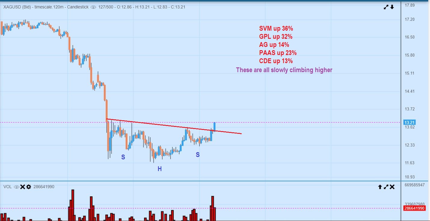 SILVER – I posted this during the day, as Silver broke out from an inverse H&S & Several Silver Miners moved up steadily.