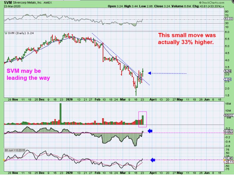 GDX & GDXJ pushed above that 10sma , but then closed below it by the end of the day, so we have a swing low with the R.R.Tracks, but still no confirmation. Gold did close above the 10sma, so it may be disappointing that GDX didn’t do the same, but it may follow Gold Tuesday. Also GDX was still up almost 7%, so it was a nice gain.