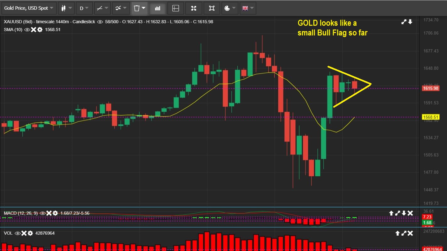 FROM THURSDAY – GOLD  DAILY :  Gold recovered quickly, so I thought that maybe we should expect a bull flag consolidation as a possibility.