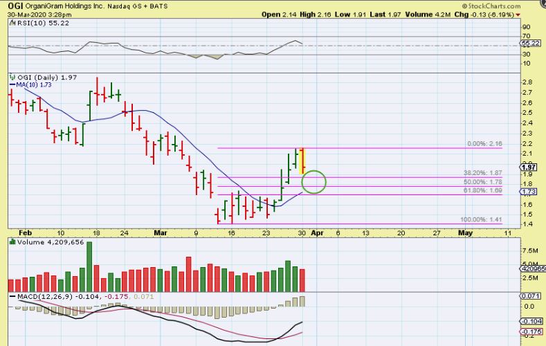 OGI -$1.40 to $2.20 produced  great %-Gains, but this can drop to the 10sma.  That also may make a nice area to add ,