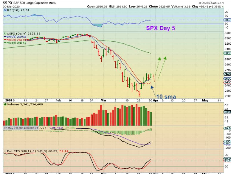 SPX On FRIDAY  I was thinking that Monday day 5th  might see a drop to the 10sma & then the bounce would continue…