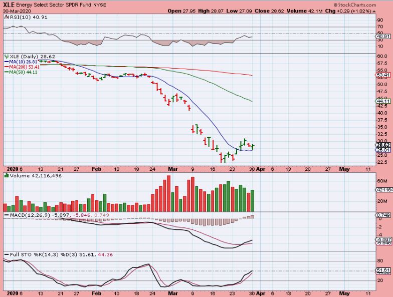 The XLE has a higher low on the 10sma, with a low forming 8 days ago.