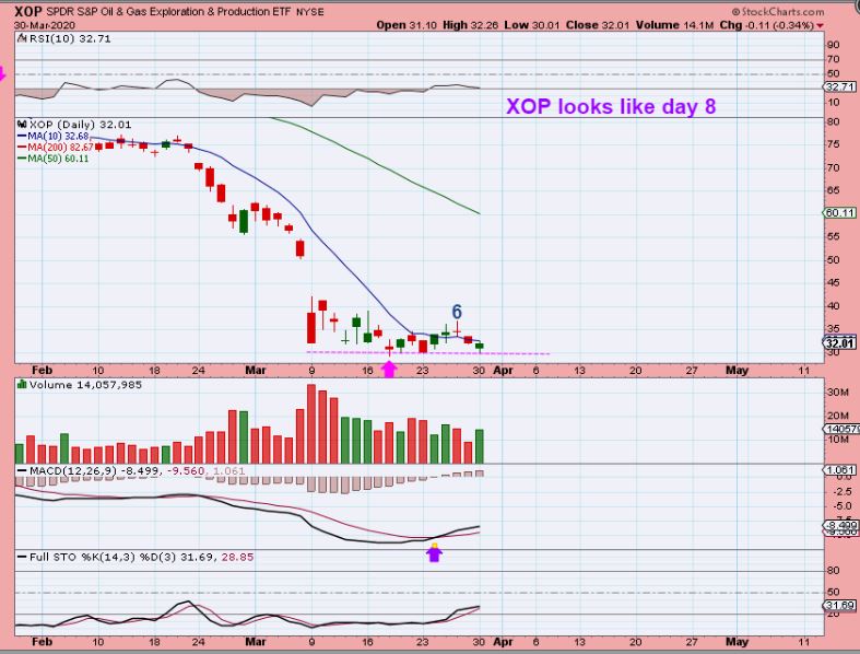 The XOP is forming a flat base, and the lows were 8 days ago here too (so far).