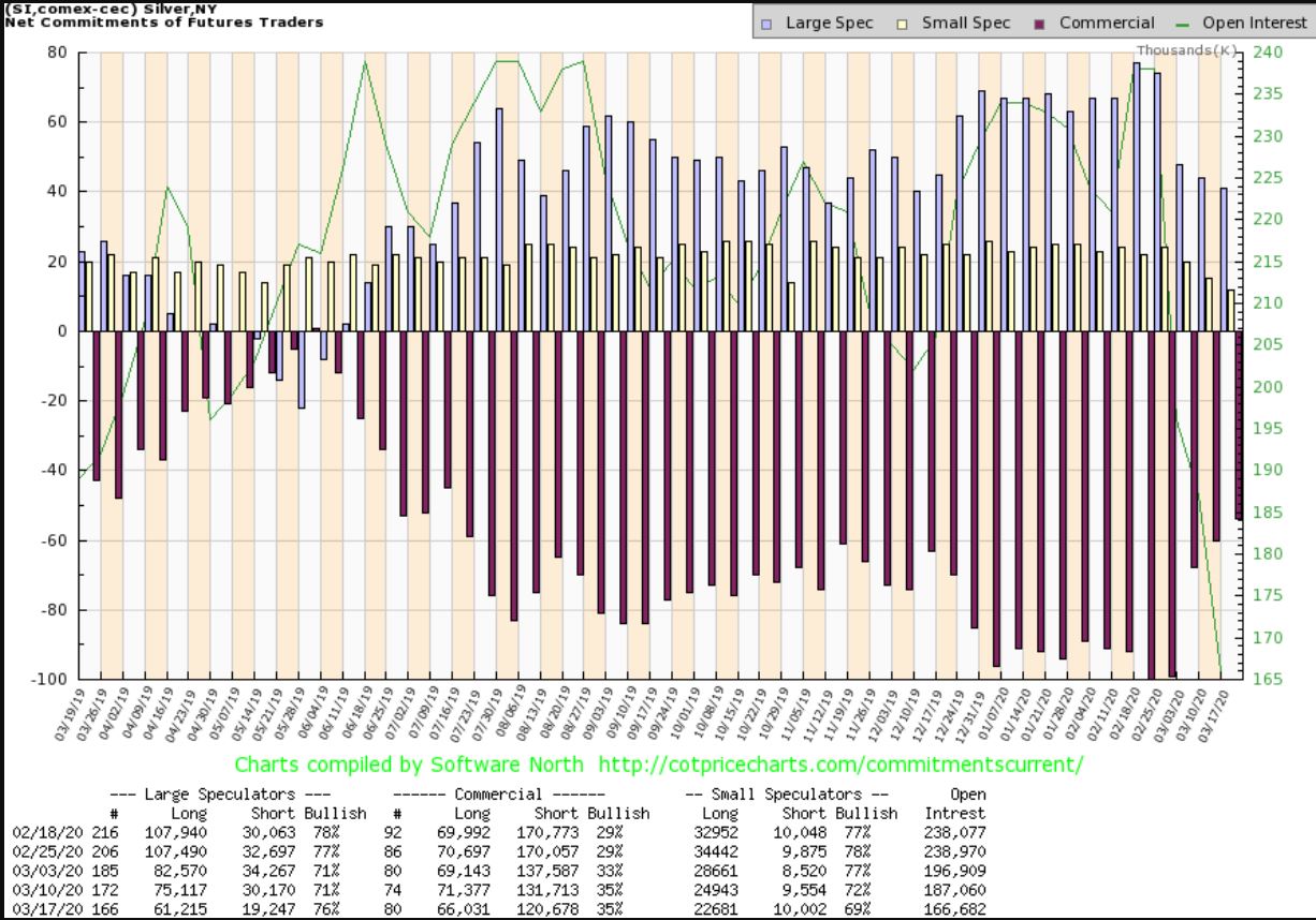 COT SILVER – Silvers COT has dropped a good amount, but as you’ll see,  it also crashed down in price more than Gold.
