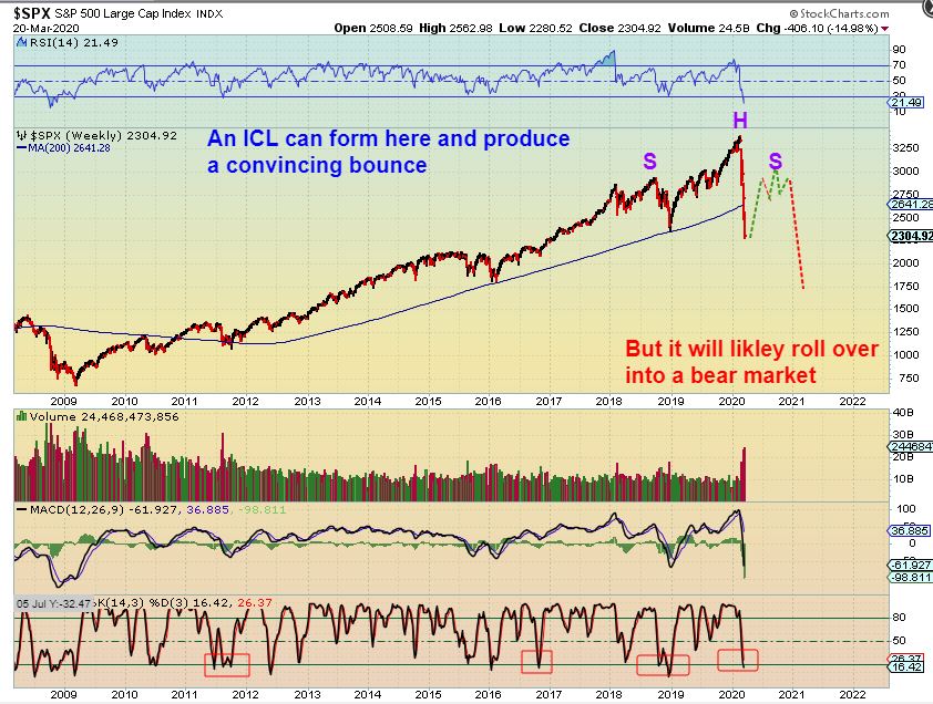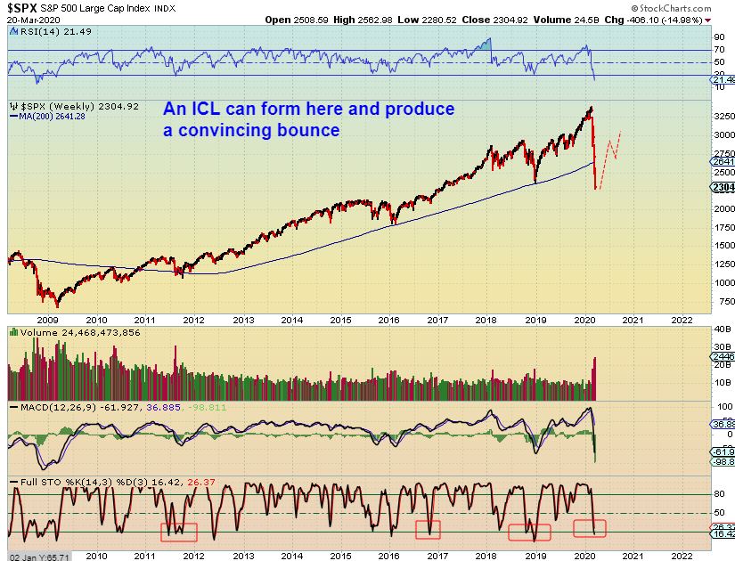SPX WEEKLY– So putting in a DCL or an ICL could really give us a convincing multi week bounce, even recovering that break down,  but…