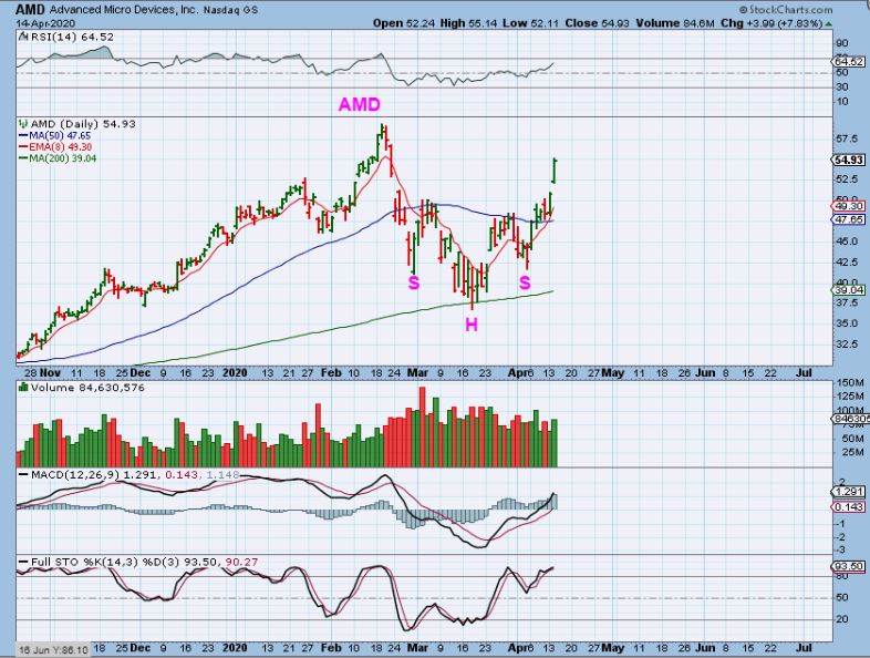 Well …  this is what AMD looks like after Tuesdays trading. The Inverse H&S was bullish for AMD, and again, MU, TSEM, and others still look good too.