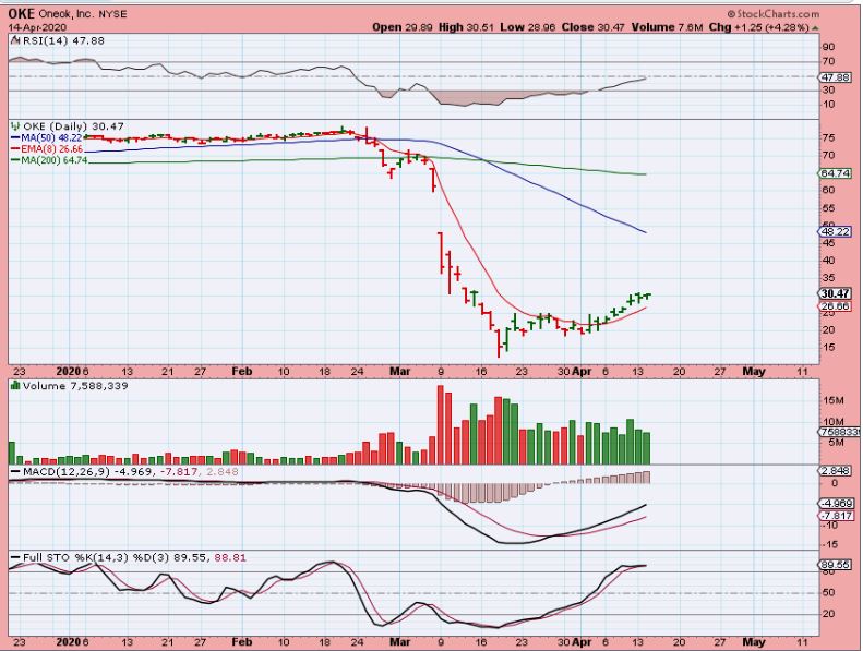 OKE – I owned OKE, APA, MRO, BE, PUMP,  etc when we had our reversals and some of these have doubled and are still showing up green every day, even with OIL threatening the lows.