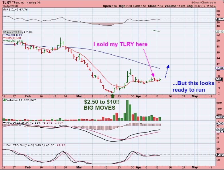 TLRY – I sold my TLRY last week and now it looks possibly ready to go again.