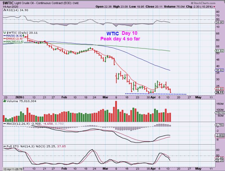 WTIC – oil is now dangerously close to the lows. It is possible to get a double bottom, and in E.W. you can retest that low too, but this is Very Close to a failure.  Either that or that low that reversed and took out the 10sma was not a dcl after all?   With all of this happening…