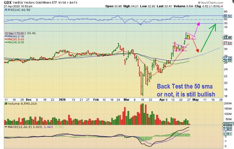 Yesterdays report had this idea:  The  GDX can drop to the 50 sma.  This could match a Fed Sell off and a Full Moon low next week.