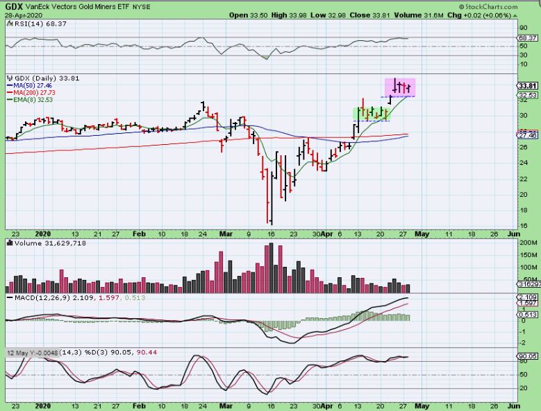 I also bought NVAX, ABT, INO, VXRT, DVAX, etc  as biotech that are trying to treat covid.  Will they all succeed?  No.  I warned everyone of that additional risk too, but the set ups were Bullish.  I am warned “These companies won’t all succeed in finding a vaccine or treating covid. Avoid them.”    I agree, they may not all succeed, but they are currently receiving funding & buyers are jumping in now. The chart patterns are playing out well.