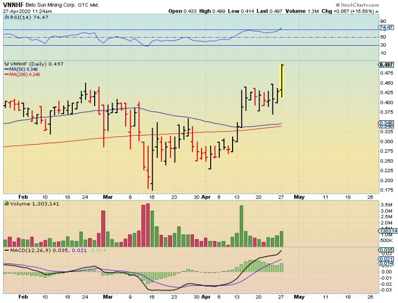 VNNHF  – Like this, up 16% as it breaks from a sideways box consolidation or sort of a flag.